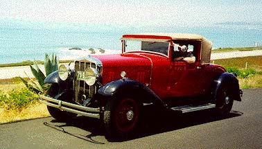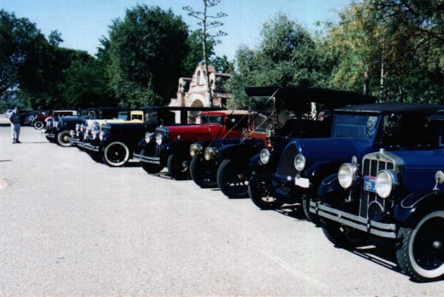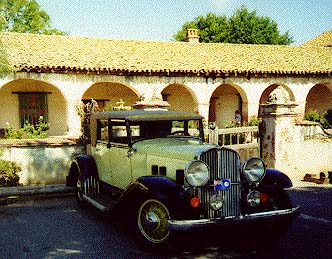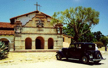 Chet and Marlene Zimmerman's 1931 153 Dietrich Speedster at the San Miguel Mission. The car was driven by their guests, Bob Lawrence and Kathy Plumley-Smith of Tasmania, Australia
