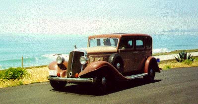 Mission San Antonio forms the backdrop for the 1933 16A Victoria Brougham recently acquired by Mike Knips.
